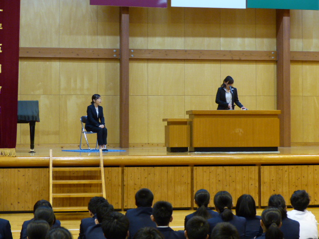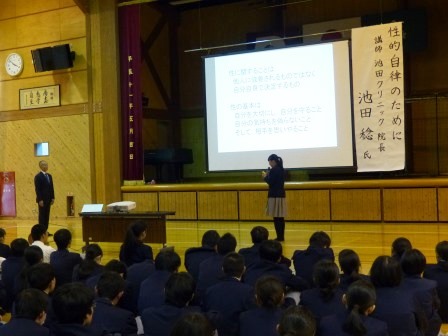 講話では、自分の身体のケア、大人の心になるということ、男女交際や恋愛におけるマナー、個性の意義や、LGBT等、今の生徒達にとって大切なことを分かりやすくお話してくださいました。生徒は、自分や相手を守るためにも性について正しい認識を持つことや、TPOを考えた行動や感情のコントロールの大切さについて深く考えることができました。