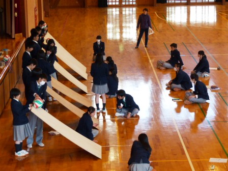 教室のスケールでも実験は可能ですが、今回は思い切って体育館で