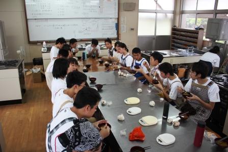 本日3・4限目に1年生が高校生になって初めての調理実習を行いました。メニューは「おにぎりとお味噌汁」。明日行われる「おにぎりの日」に向けての練習でした。特に男子は慣れない手つきでおにぎりを握っていました。