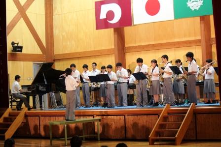 今日は、2年2組が終日企業見学(濱田重工・再春館製薬所)だったり、吹奏楽部が城北地区高校交歓音楽会で公欠だったりで、校舎内にいる生徒が少なく、いつもより学校が寂しく感じました。(写真は吹奏楽部)
