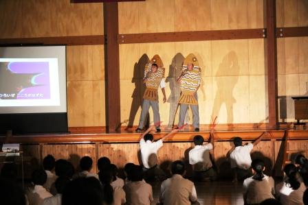 まずは体育館で、各クラスの映像発表やステージ発表が行われました