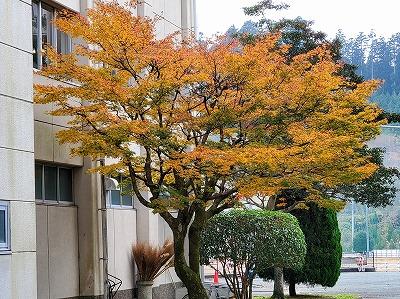 11月12日(火)、校内を歩いてみました。紅葉も今まさに見頃です。赤や黄に染まる木々を見て、秋が深まるのを感じています。間もなくやってくる冬に負けじと、美しく染まる紅葉を横目に授業が行われている小国高校です。
