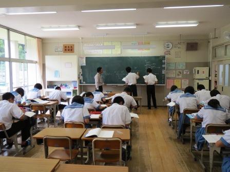 小国高校では週に1回、英語と数学の先生が中学校の授業に参加して