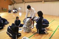小国高校では全生徒・全職員を対象にAED講習会を年に1度実施しています。この日は1年生でした。初めてAEDを触ったり、心臓マッサージ・人工呼吸を体験した生徒がほとんどでした。消防署の職員の方の話を真剣に聞いて取り組んでいました。