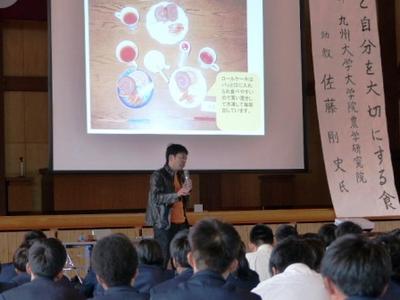 10月29日(火)、九州大学大学院農学研究院 佐藤剛史先生を講師にお迎えし、「人と自分を大切にする食」という演題で講演をおこなって頂きました。