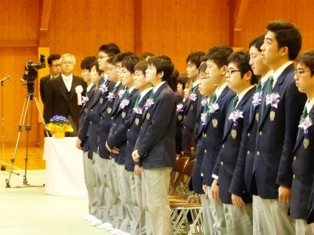 在校生代表の生徒の「我らは誇る小国高 友よ志を尚くせん」の掛け声のあとに