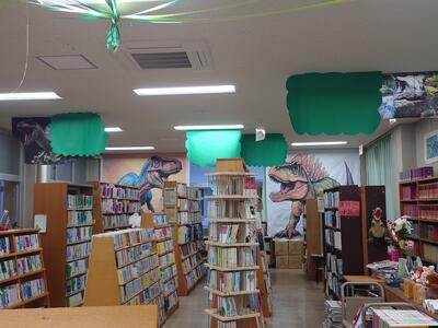 図書委員ががんばって、恐竜の世界をつくりあげました。