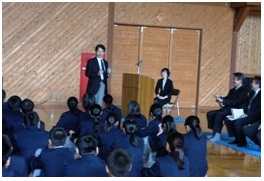 講演のタイトルは「産婦人科、子宮、妊娠、そしてがん、そんなの私達に関係ない?-自分が生きていることを奇蹟だと考えたことがありますか?-」性教育はともすると、生徒も大人でも真剣に考えること避けたいと思うテーマです。しかし、片渕先生のがん患者さんと真剣に向き合う姿から、今回の講演で、正しい認識をもつことがいかに大切か、それが将来の親になる自分につながることを、生徒達はしっかり学んでくれたと思います。 性は生へ、そして世へつながる、先生のその言葉はとても深く生徒に響いたと思いました。
