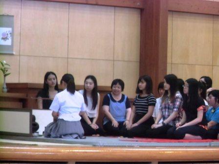 本日6限目に、15名の中国文化大学日本語学科学生研修団が小国高校にいらっしゃり、交流会が行われました。小国高校からは茶道部のお手前披露、中国文化大学からはダンス披露がありました。茶道部のお手前披露では、その場で立てたお茶を実際に味わってもらい、日本文化を体感してもらえたかな、と思います。最後にはグループに分かれて、自己紹介をしたり、折り紙をしたりして交流を深めました。