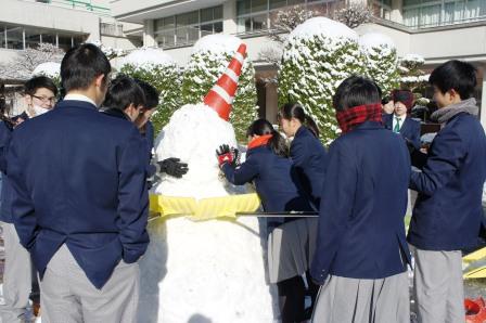 大雪 投稿日時 : 2017/02/10 記事投稿者 雪が積もったため、生徒達が玄関周辺の雪かきをして、大きな雪だるまを作りました。寒さと雪の冷たさにも負けず、楽しそうに作っている様子に小国高校生のたくましさを感じました。文責:鹿本