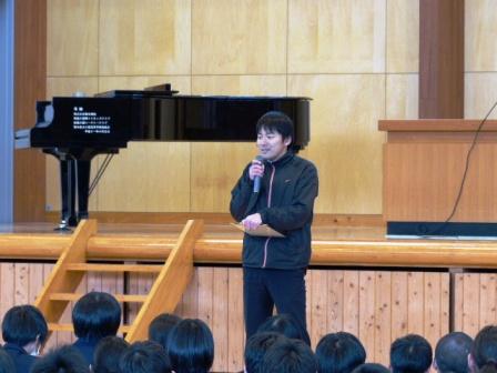3時間目には、全校集会が開かれ、講話では化学の先生からのお話がありました。
