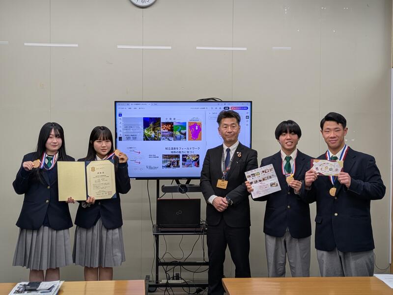 2月5日、小国高校生が小国町・南小国町の両町長を表敬訪問し、「第13回 高校生ビジネスプラン・グランプリ」での全国ベスト100選出を報告してきました!