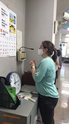 明日の朝に体育館で退任式を行う予定でしたが、台風で臨時休校となってしまったため、急遽放送で退任式を行いました。エリカ先生の授業は、ゲームや写真などがたくさん使われていたので、楽しく、そしてわかりやすく英語を学ぶことができました。