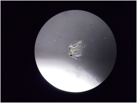 数週間後に水泳の授業が始まることもあり、先日、トイレ、シャワー等の点検を行いました。その時に何気なくのプールの中を見ていたら、なにやら砂粒程の小さな動く集団を発見しました。早速、科学部に顕微鏡を使って調べてもらったところ、ミジンコと判明しました。川と繋がっている訳でもなく、どこから来たのか不思議です。