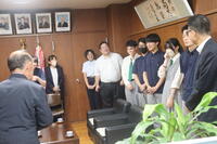 河津酒造株式会社代表取締役会長の河津悦雄さまより、ウィンドチャイムとピッコロをご寄贈いただき、代表として吹奏楽部2年生に手渡されました。