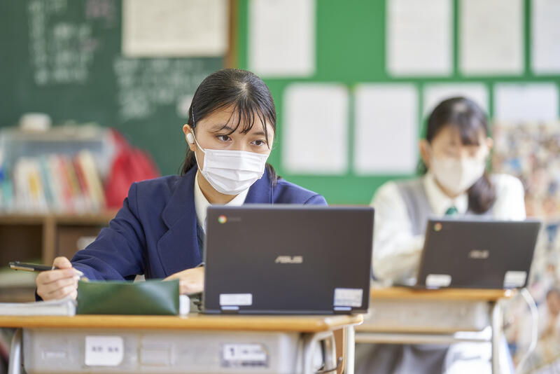 また、7:30ごろに登校して、自主学習に励む生徒もいます。 Wi-Fi 環境が整備されており、自由に使える一人一台端末を活用して、 意識高く学ぶ生徒が多数います。 高い目標を地元の高校に進学して叶えるための隠れた努力の時間です。 |
