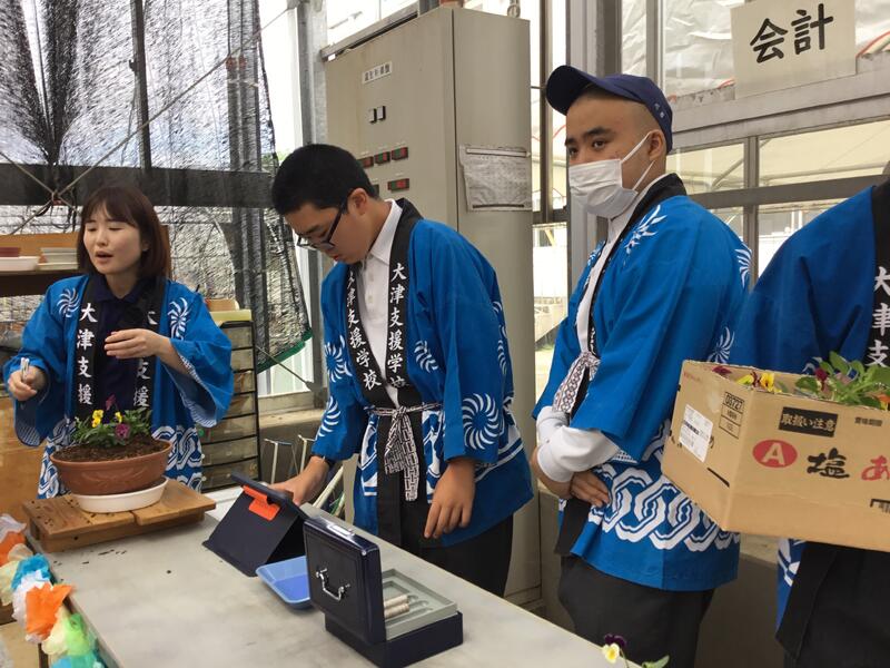 9月9日から、10月27日のふれあいサンデーの販売会に向けて、やきもの班、木工班、フラワーガーデン班の3つの班に分かれて作業学習に取り組んできました。やきもの班では、毎年人気の「小皿」や「魚皿」に加え「マグカップ」等、製品の種類を増やして販売しました。木工班では、木の性質を活かして、様々な製品を作りました。今年は、「バインダー」や「物掛け」等、生活に便利なものを、新製品に取り入れ、製作に取り組みました。フラワーガーデン班では、きれいな寄せ植え鉢と元気に育つ土を作りました。また、購入者へのお礼の気持ちとして「シードボム」(いろいろな種類の野菜の種を、団子状に固めたもの)作り、購入してくださったお客様に配りました。どの班も、丁寧な製品作りを心掛け、一生懸命に取り組みました。 ふれあいサンデー販売会当日は、多くの方々に来校していただき、たくさんの製品を購入して頂きました。生徒たちは、商品の受け渡しやお金の計算、販売の呼び込み等、日頃の学習活動の中では体験できない、貴重な経験を得ることができました。製品は完売し、生徒たちは大喜びで嬉しさを共有する様子が見られました。