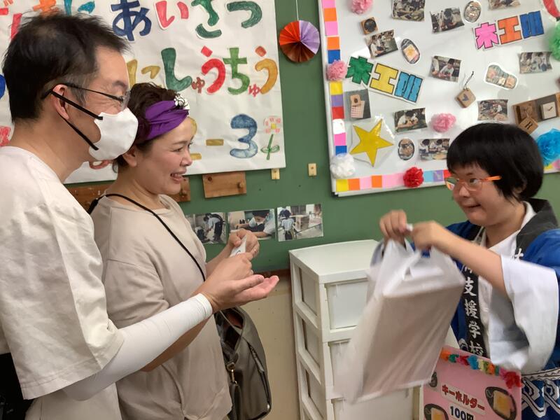 ふれあいサンデー販売会当日は、多くの方々に来校していただき、たくさんの製品を購入して頂きました。日頃の学習活動の中では体験できない、商品の受け渡しやお金の計算、販売の呼び込み等、貴重な経験を得ることができました。すべての作業班で製品を完売することができ、生徒たちは大喜びで嬉しさを共有する様子が見られました。