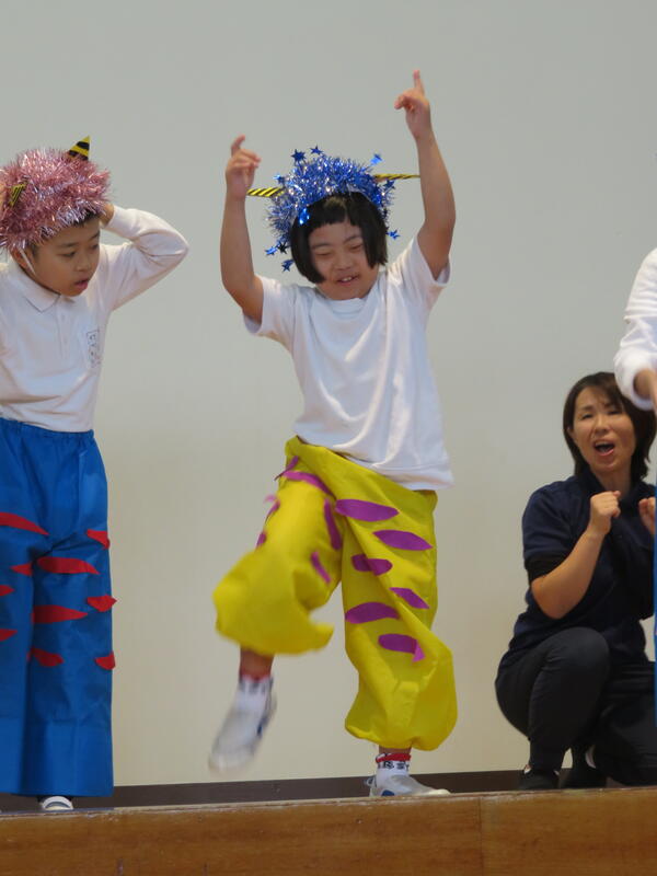 9月29日から10月26日のふれあいサンデー当日までの期間中、中庭に「わっしょいひろば」がオープンし、手作りの大型滑り台やボルダリング等、たくさんの遊具が登場しました。今年は、ちいかわやワンピース等、子どもたちの大好きなキャラクターがいろいろな遊具に登場し、他学年の友達や教師と一緒に楽しむ様子がたくさん見られました。また、ふれあいサンデー当日のステージ発表に向けて、各学年で練習を積み重ねてきました。