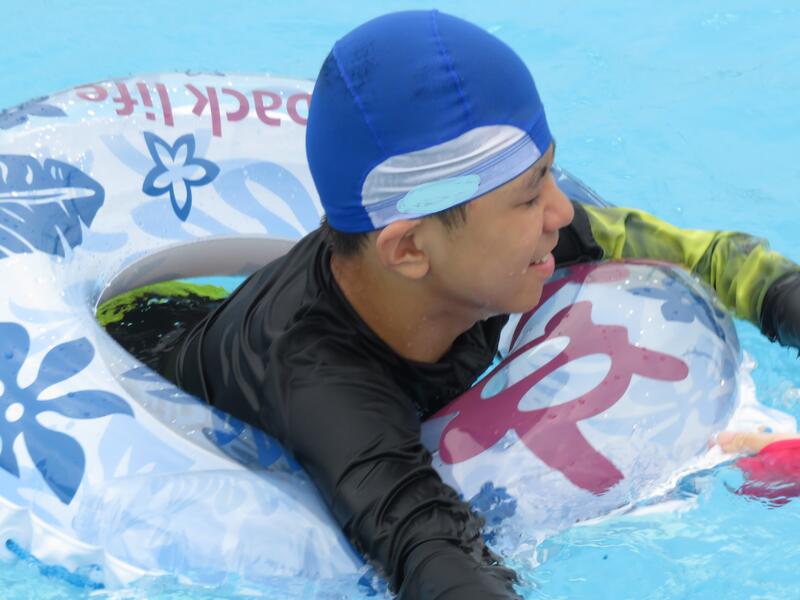 6月23日(月)から9月5日(金)まで、プールで水遊びの活動を行っています。今年4月に入学してきた1年生は、最初は水に対して緊張した表情をしていましたが、次第に顔に水をつけられるようになり、足が着かない大プールでも笑顔で楽しむ姿が見られるようになってきました。また、高学年は、ビート板を使ってバタ足をしたり、クロールでの息継ぎの練習をしたりする等、泳ぎ方を学び、泳げる距離が少しずつ延びてきました。夏休み明けの残りわずかなプールの活動で、思う存分に水遊びをエンジョイしましょう!!