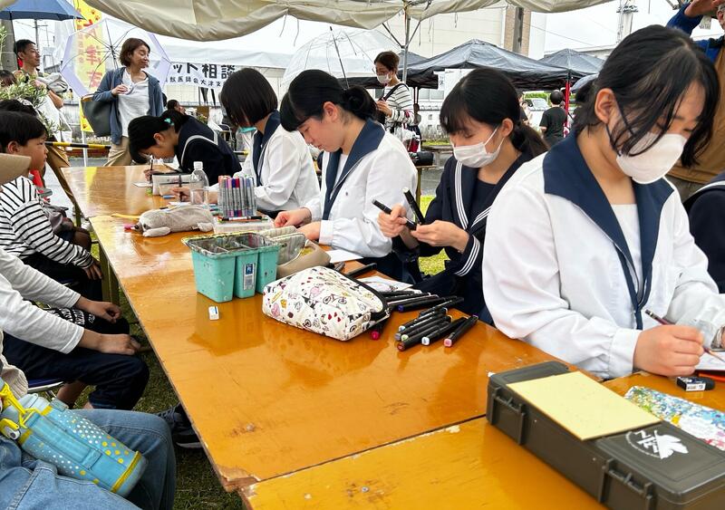 〈似顔絵ボランティアの様子〉