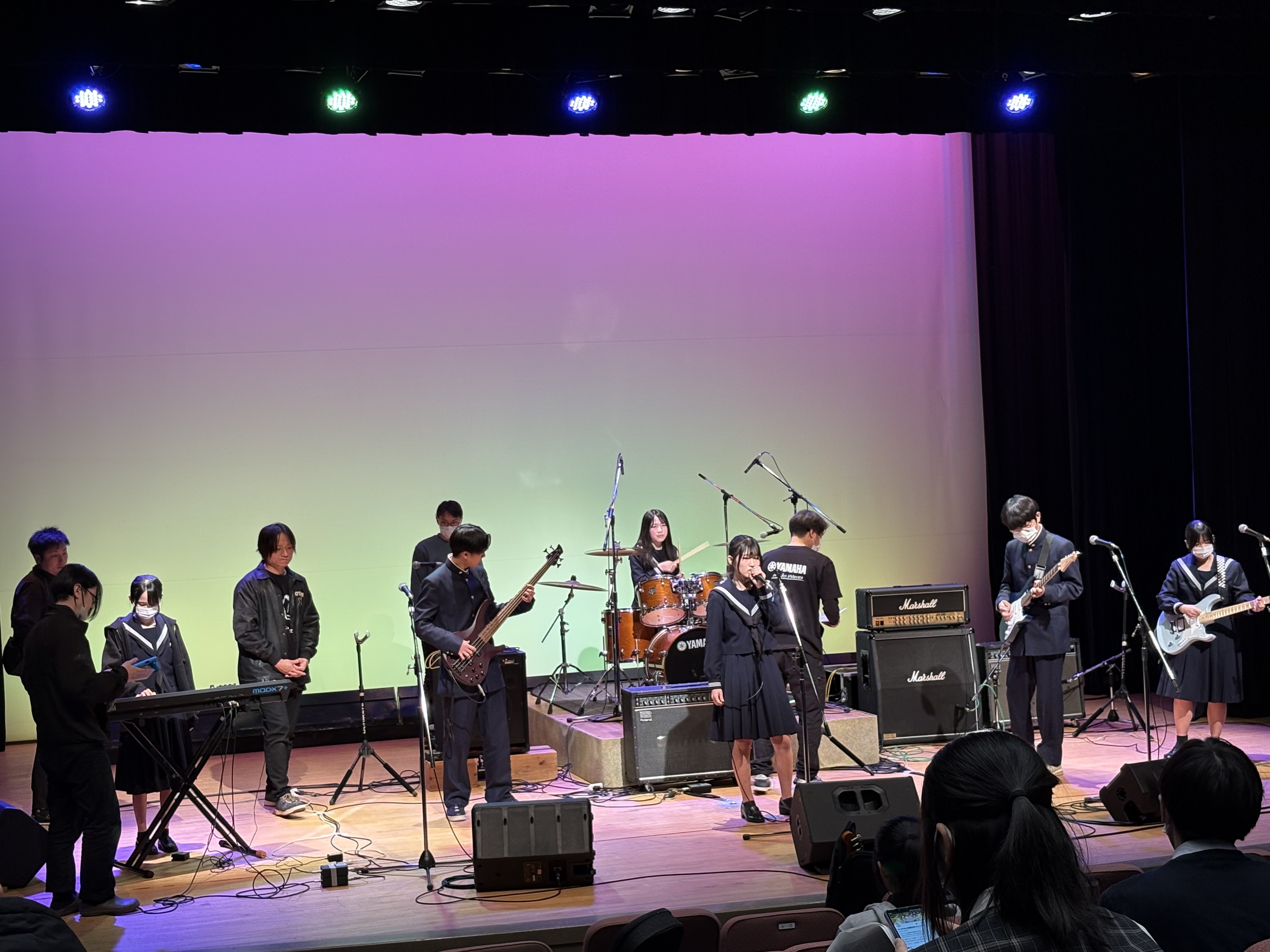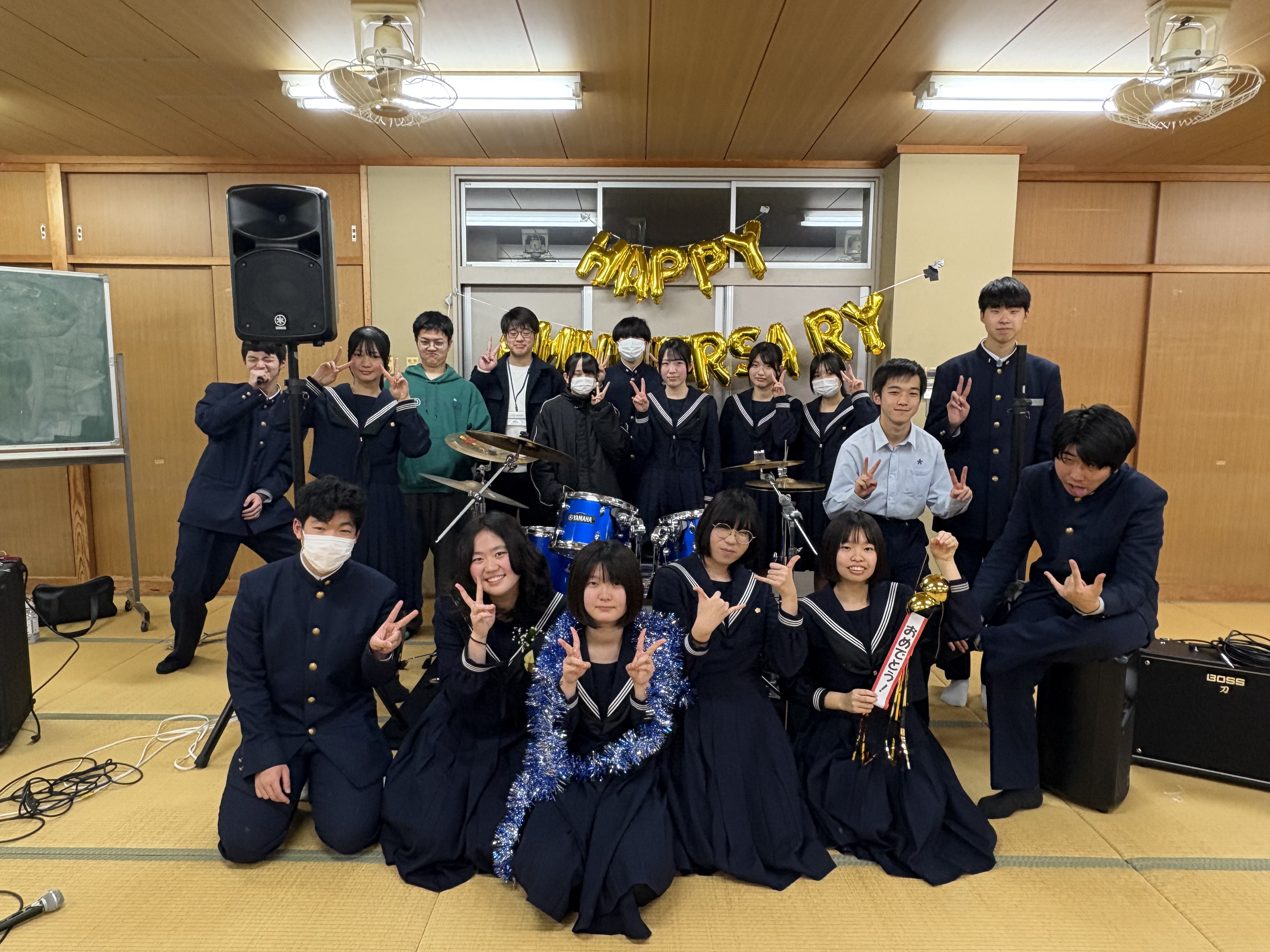 大津高校音楽部は2年生6名、1年生6名、合計12名で活動しています。ギター、ベース、ドラムなど主に軽音楽をメインにしながら活動しています。部員のほとんどが初心者だが、先輩たちに楽しみながら教わり、最終的にはバンドが組めるほど上達できます。部員の中には生徒会執行部の一員であったり、他の部活動と兼部したりしていますが、大丈夫です。令和6年には3年生(6名)中、4人のバンドがオリジナル曲に挑戦し、7月にあった九州大会にも出場することができました!濟々黌高校と中央高校にて軽音楽連盟が主催する、舞台講座、学期講座に参加し、最後は他校の軽音部と合同ライブに参加しました。また、熊本市子ども文化会館のホールで行われた合同ライブにも参加し、自分たちが弾きたい曲を披露することができました。