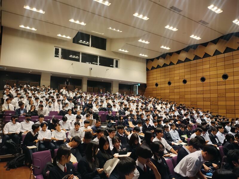最後に校長先生から講評で、今回のテーマである「Love」とはどういうことか、「愛」とはなにかについてのお話があり、ある曲の一部を歌われました。大津高校そして生徒への愛が伝わる歌声でした。