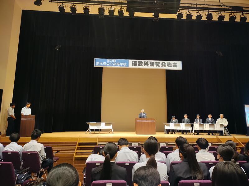 本発表会は理数科のコースが設置してある5校で行われている課題研究等の成果を各校代表が発表する大会で、最優秀の学校は令和8年8月に沖縄県で実施される、第28回中国・四国・九州地区理数科高等学校課題研究発表大会におけるステージ発表の熊本県代表校となります。