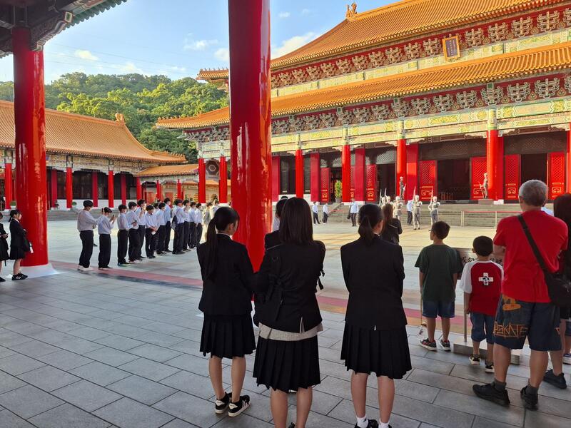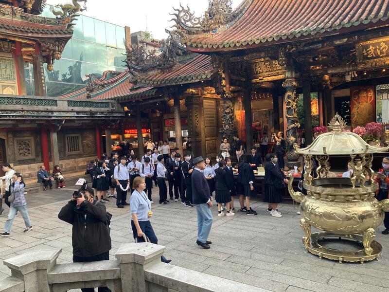 台湾到着時、外の気温は24℃で驚くほど暑く、空港を出るとすぐ生徒達はジャケットを脱いだり袖をまくったりしました。忠烈祠、龍山寺での観光を楽しみ、夕食はホテル近くのレストランで鍋料理を堪能しました。