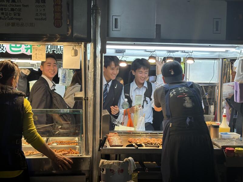 午後は待ちに待った班別自主研修です。この日のために生徒たちは各班で台北市内の観光地やそこまでの行き方などを調べてきました。現地の大学生が各班に付き、生徒が行きたい場所まで安全に付き添って下さいました。研修が終わる頃にはお互いにすっかり打ち解け合い、最後は名残惜しそうにお別れしていました。
