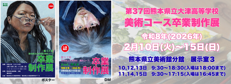 令和8年2月10日(火)~15日(日)に熊本県立美術館分館展示室3にて第37回熊本県立大津高校美術コース卒業制作展及び第78回陽美展を開催しました。