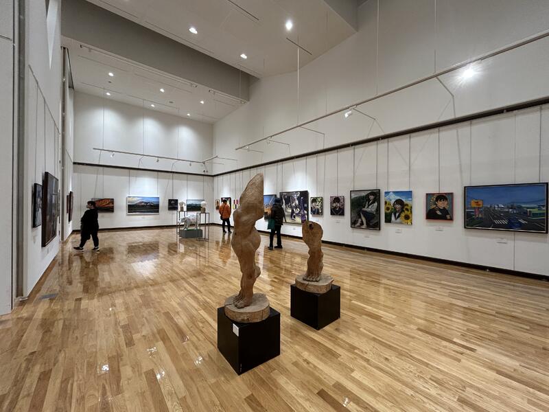 3年生の卒業制作作品を中心に展示しており、加えて1,2年生の作品や教員の作品、そして本校OBによる美術団体「陽美会」の会員である画家達の作品も展示しました。
