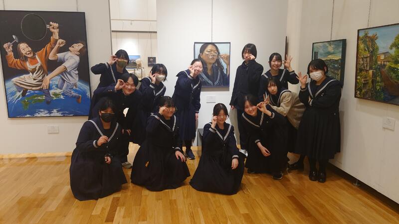 午後からは学校から外に出て美術館へ!熊本市現代美術館ギャラリーIII しまうちみか茫茫を鑑賞後、熊本県立美術館分館で高等学校美術展を鑑賞しました。高等学校美術展には熊本の高校生が出品しており、本校の2年生も出品しています。美術館で同年代の人たちの作品を鑑賞することで、自分の作品の客観視ができたり、他の人の作品から刺激を受けることで、反省や学びも多くあったことと思います。