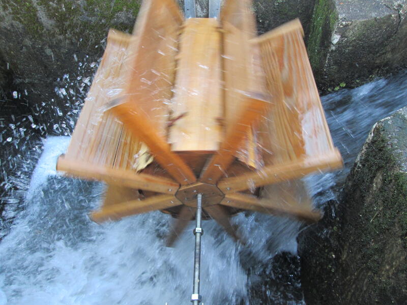 「水土里ネットおおきく(おおきく土地改良区)」様に依頼し校内の水路に水を流してもらいました。回っている様子をたくさんの生徒や先生方見に来てくれました。