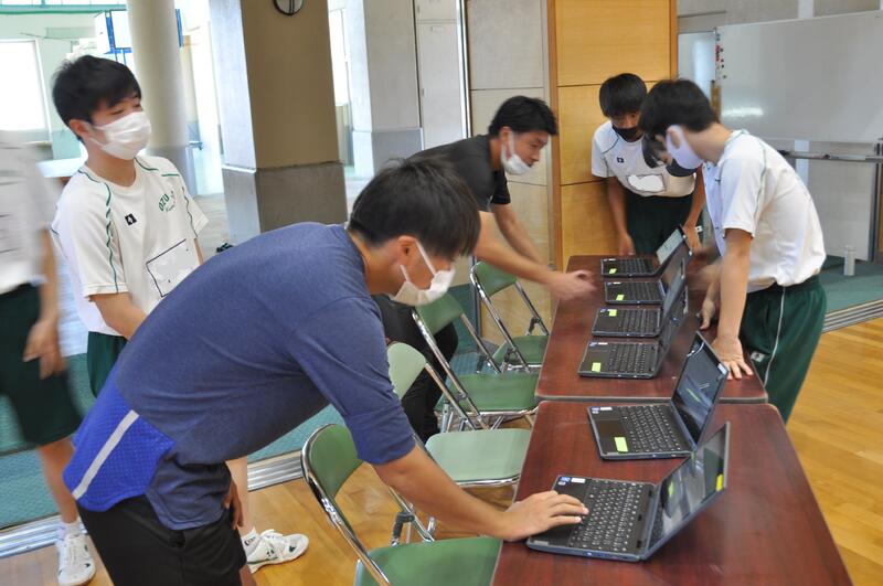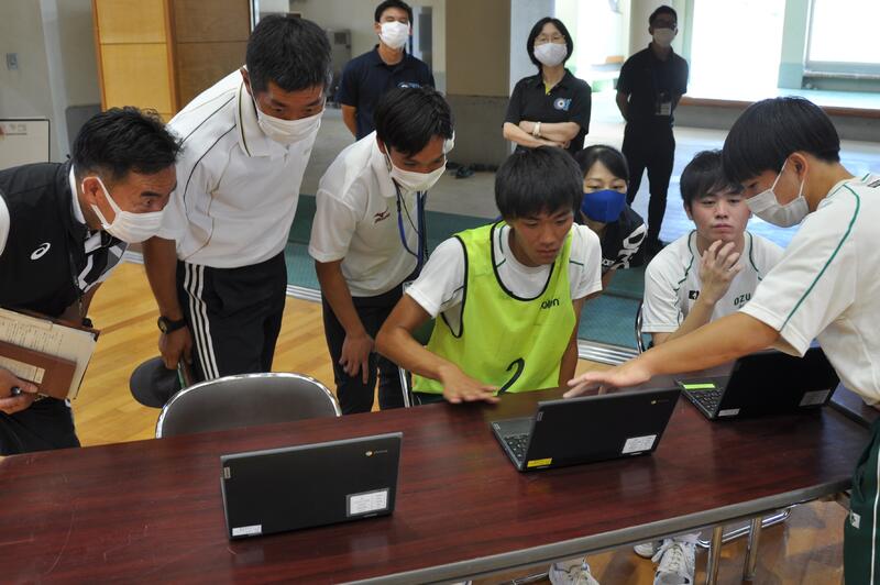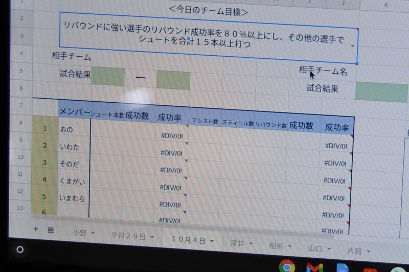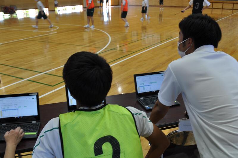 10月4日(月)3限目、3年生の体育の授業で教育実習生の研究授業がありました。チーム毎に目標と練習内容を定め、試合では他のチームによるデータ入力、最後にチーム毎のデータ分析による振り返りが行われました。