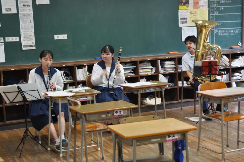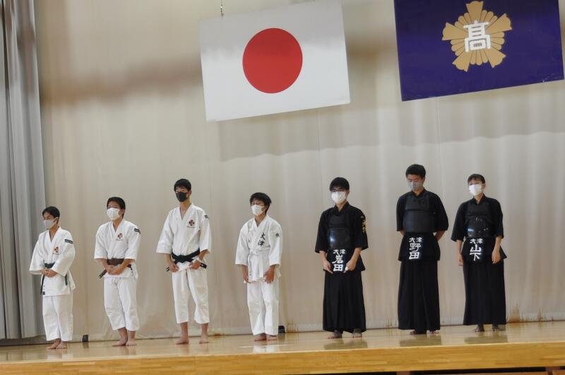 第66回九州吹奏楽コンクール熊本支部予選高校Aパート金賞、第34回熊本県高等学校打楽器独奏コンクール個人表彰及び令和3年度第1回校内ビブリオバトル表彰を行いました。