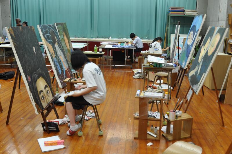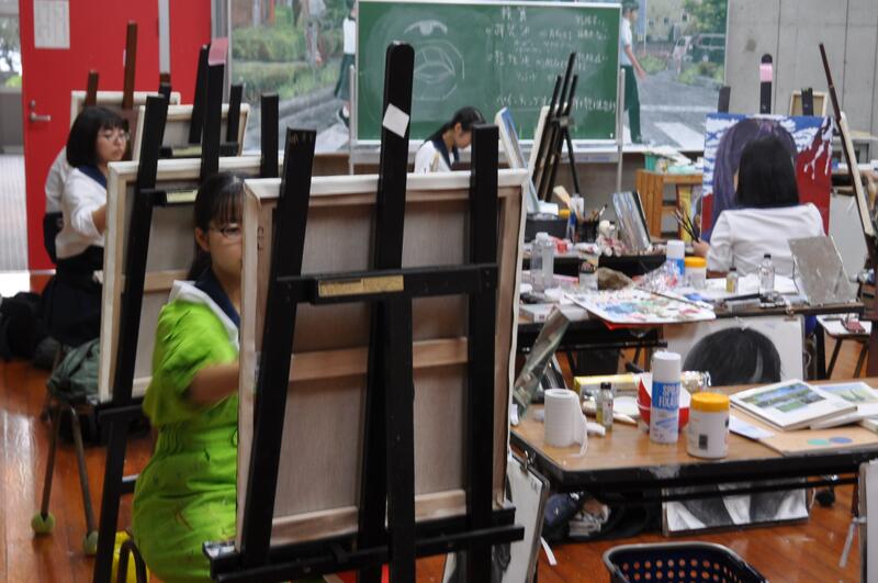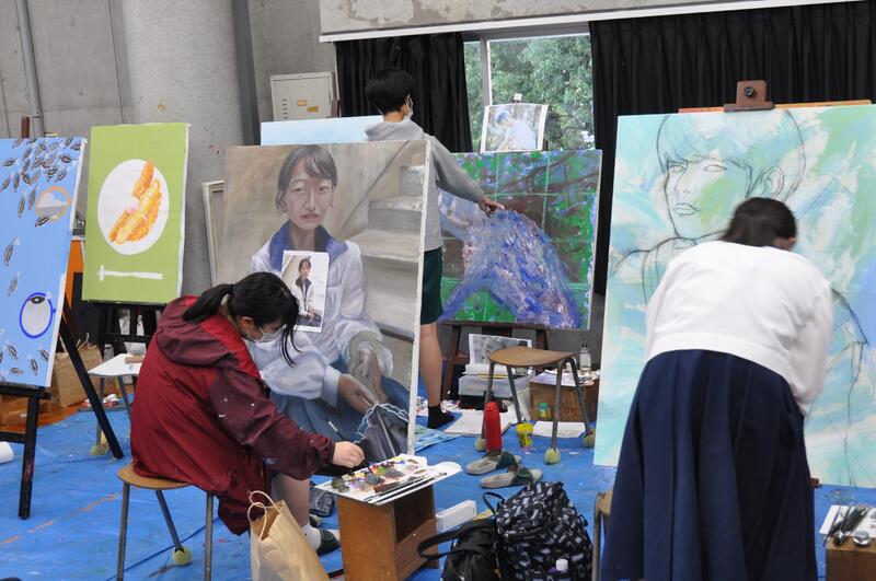 今日の放課後の様子です。美術コースの団画(体育大会時に作成)を毎年文化祭の時には掲示しますが、今年度の作品は当日の風雨で敗れてしまったので、数年前の作品を掲示しました。2年生のダンスの練習と保健委員会の展示物の作業の様子です。