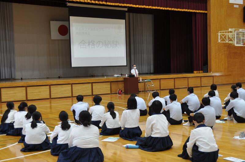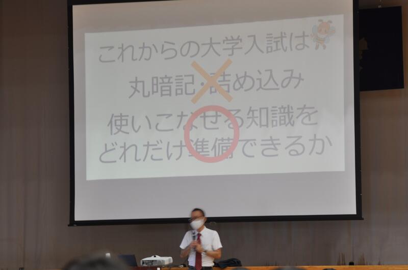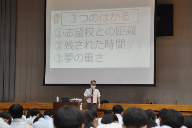10月15日(金)6限目、北九州予備校から大山純治先生に来ていただき、3年生の共通テストを受験予定の生徒に対して、受験に対する心構えや受生の心理について、やる気の出る刺激のある講演をしていただきました。