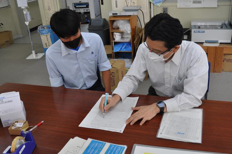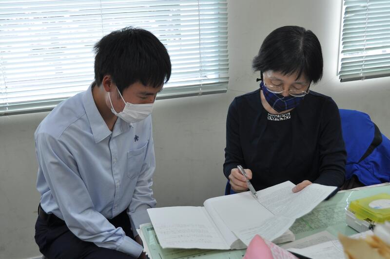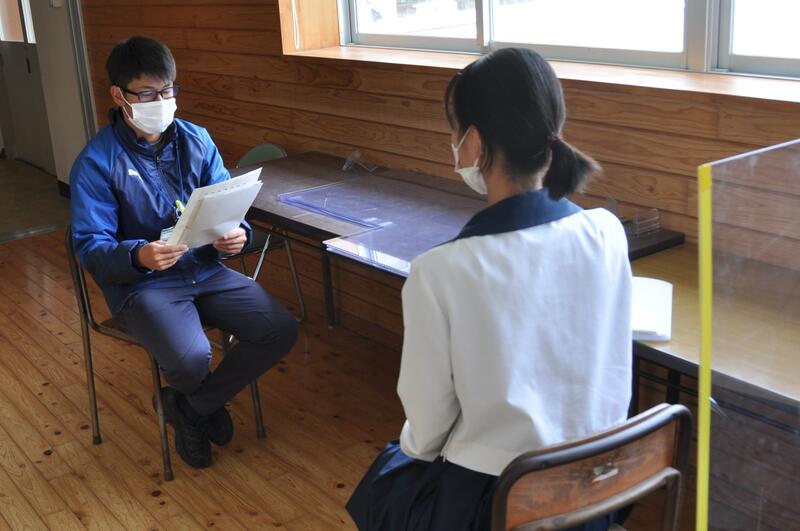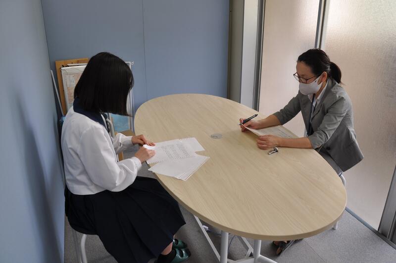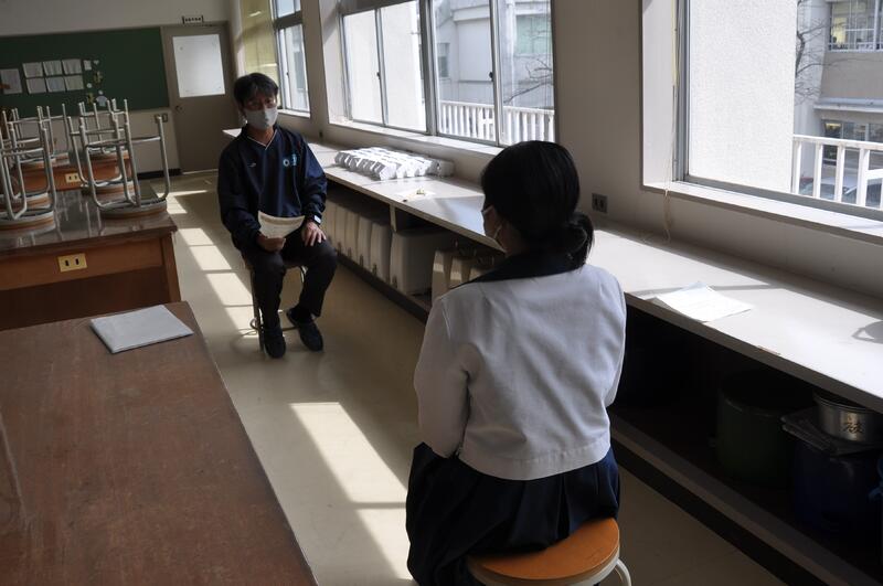 今日の昼休み、3年生の受験指導の様子を紹介します。推薦入試等を控え、学年の枠を越えて添削指導や面接指導が行われています。