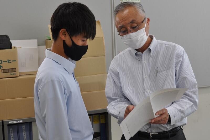 新生徒会(2年生16人、1年生18人)に対しては、新会長の柏倉一晴くんが代表して任命状を受け取った後に挨拶を行い、最後に大嶋校長先生から激励の言葉をいただきました。当面は新型コロナウイルス感染症予防対策を講じながらの活動となりますが、来年には創立100周年を迎えます。これまでの大津高校の伝統を引き継ぎつつ、新たな取組に挑戦してくれることを期待します。頑張って下さい。