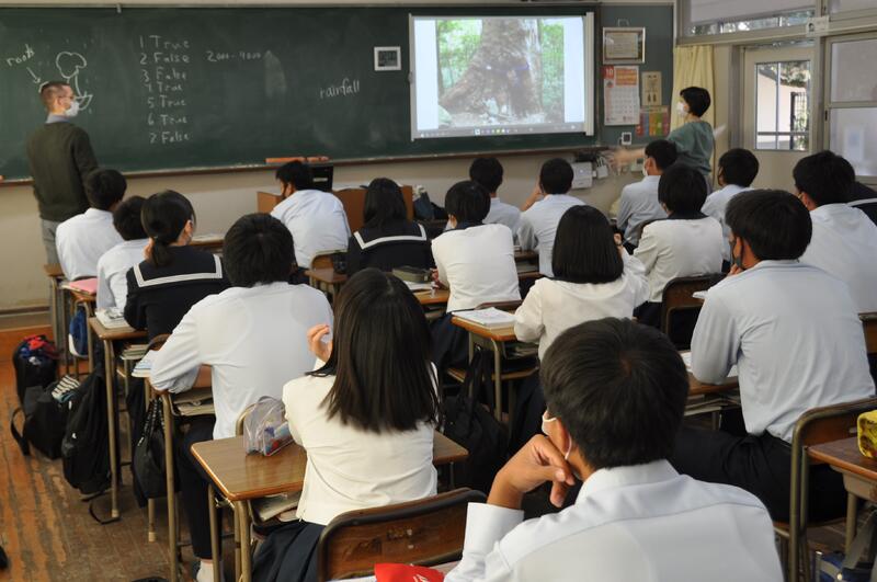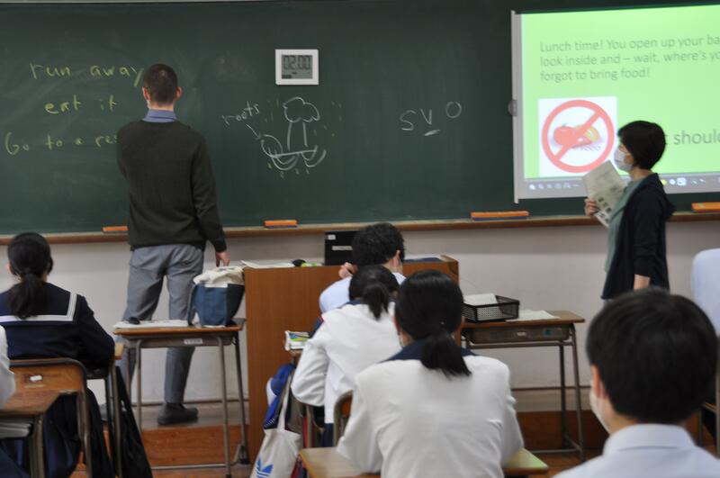 本日の1,2年生の授業の様子を紹介します。2学期に入り教室備え付けのプロジェクターとスクリーン、Wifi環境が整い、多くの授業で活用されるようになりました。