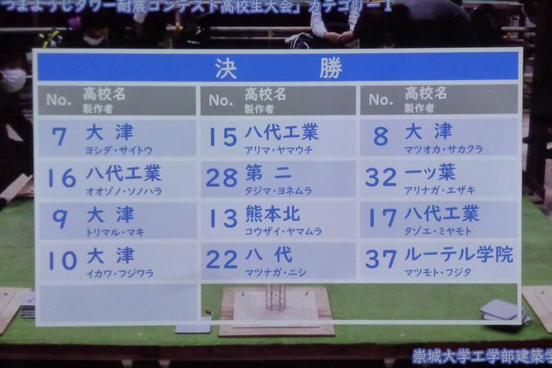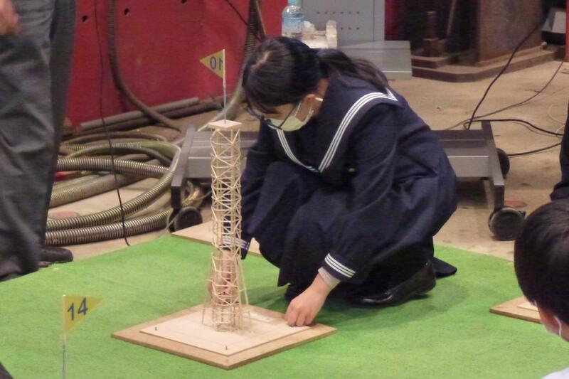 10月30日(土)に崇城大学の池田キャンパス構造物実験室で 第10回「つまようじタワー耐震コンテスト」が約2年ぶりに開催されました!密を避けるため、県内の高校のみの参加となりましたが、カテゴリーⅠには次の14校47チームが参加しました。(文徳、真和、熊本北、八代工業、御船、八代、第二、一ッ葉、鹿本商工、ルーテル学院、天草、人吉、阿蘇中央、大津)