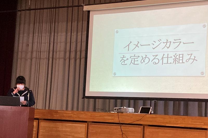 2年生では、2学期間、「総合的な探究の時間」において全生徒が9つのゼミに分かれ、個人研究に取り組んでいました。本日は、各ゼミで優秀論文に選ばれた研究の発表を行い、発表者全員を「優秀研究賞」として表彰しました。さらに、先生方から審査員を選出し審議した結果、5組水上さんの研究テーマ「数字にこだわらず幸せに生きるには」を「最優秀研究賞」に選出しました。