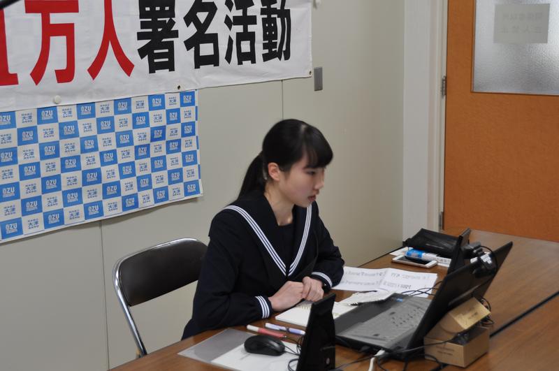 12月16日(水)全国の「高校生平和大使」と国連軍縮担当上級代表の中満泉事務次官とのオンラインでの意見交換会に2年生の水上さんが参加しました。水上さんも自身の質問に対してアドバイスを頂くことができました。