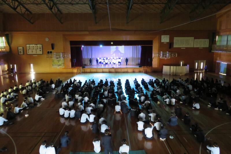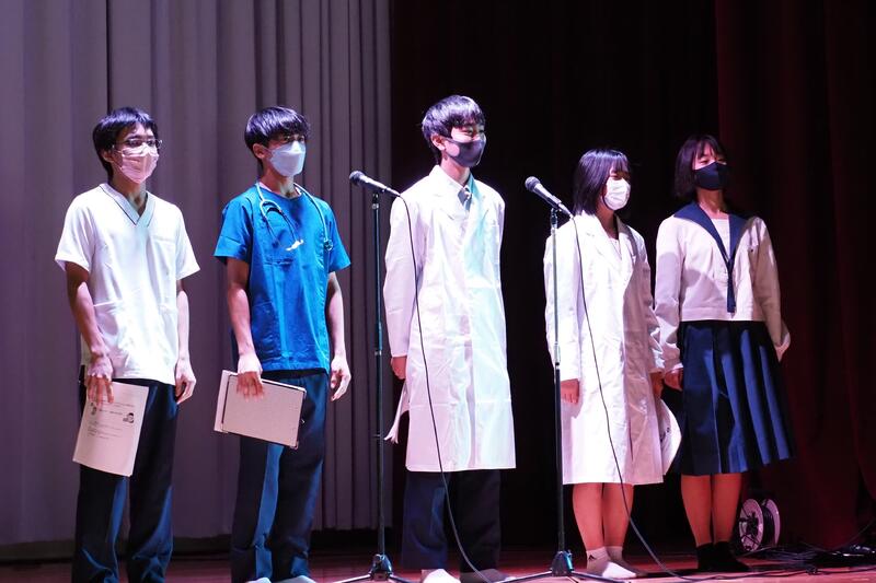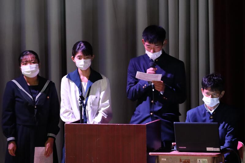 10月29日(金)文化祭を開催しました。新型コロナウイルス感染症対策を行っての計画のため、一般公開はせず校内ではステージ発表を中心に実施しました。午前中は、1,3年生が体育館で、2年生は各教室でライブ配信を観覧し、午後は、1,2年生のみ体育館での観覧としました。展示作品については、大津町役場、大津町図書館等で行いました。