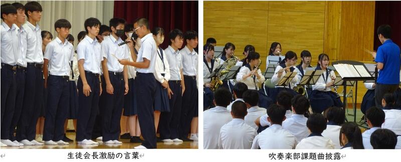 表彰式では、令和6年度高校総体・総文祭で活躍した団体や個人が表彰されました。その後の激励会では、生徒会長が県大会・九州大会・全国大会に出場する生徒へ激励の言葉を送りました。終業式はリモート形式で行われ、新生徒会役員認証式終了後、校長先生からの訓話、また、大津警察署より講師をお招きし、夏休みに気を付けるべきスマホの使い方などについて講話をしていただきました。