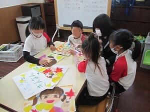 2学年のフードデザインの授業で大津いちご保育園を訪問し、手作りの食育紙芝居を発表しました。テーマは「銀杏」。本校に遊びに来られる園児たちにイチョウの紹介と銀杏の実を触るとき、食べる時の注意を促す内容です。年中と年長のクラスに分れて自作の紙芝居を披露する生徒たち。最初は緊張していましたが、一生懸命質問してくれる園児に応えて、徐々に距離も近くなり、笑顔になりました。