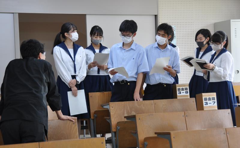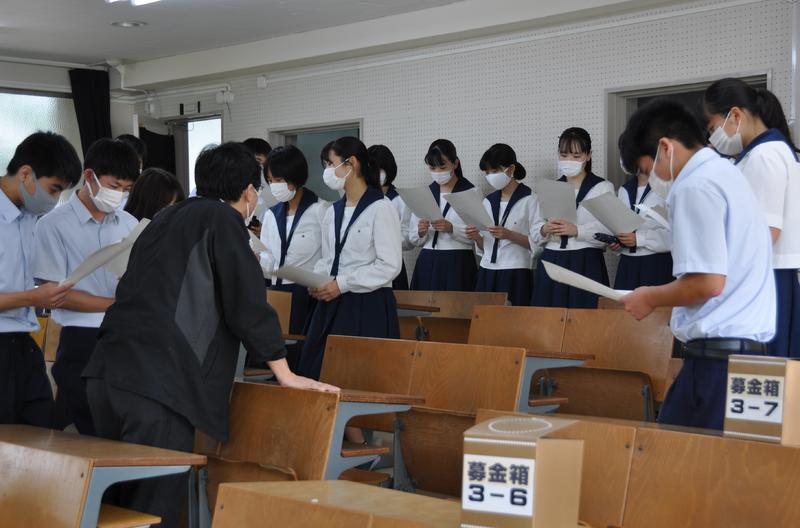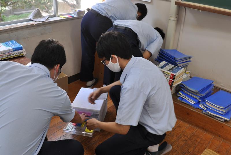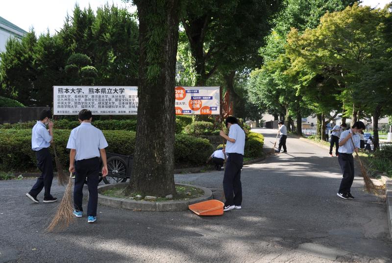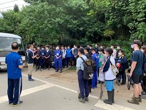 本校では、本日23日(木)と明日24日(金)に球磨・人吉地区の災害ボランティアへの参加を呼びかけたところ、生徒124人、職員13人の希望者が出ました。移動用のバスでの新型コロナウイルス感染防止のため、乗車人数をバスの定員の半数にし、本日4台、明日5台に別れボランティアに参加します。