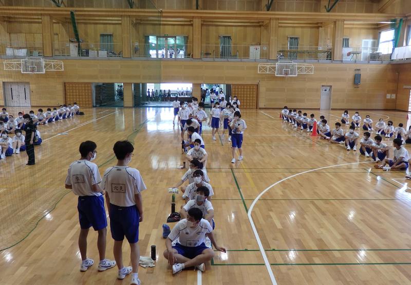 コロナウイルス感染症防止のため、多くの学校行事を自粛しています。そんな中、2年生の生徒会メンバーから3年生のためにクラスマッチを企画したいと申し出があり、本日午後の時間帯でクラスマッチ(ドッヂビー)を実施しました。競技前の手指消毒と競技間の道具の消毒等、感染症予防対策と熱中症対策を施しての実施です。気温も高くなりましたが、熱戦が繰り広げられました。生徒たちは、日頃のストレスを発散するように楽しんでいました。企画をしてくれた生徒会の皆さんありがとうございました。