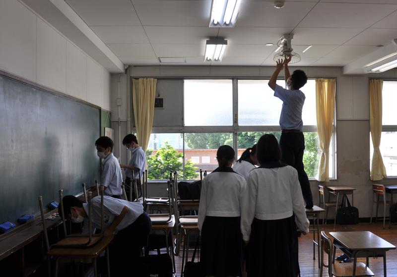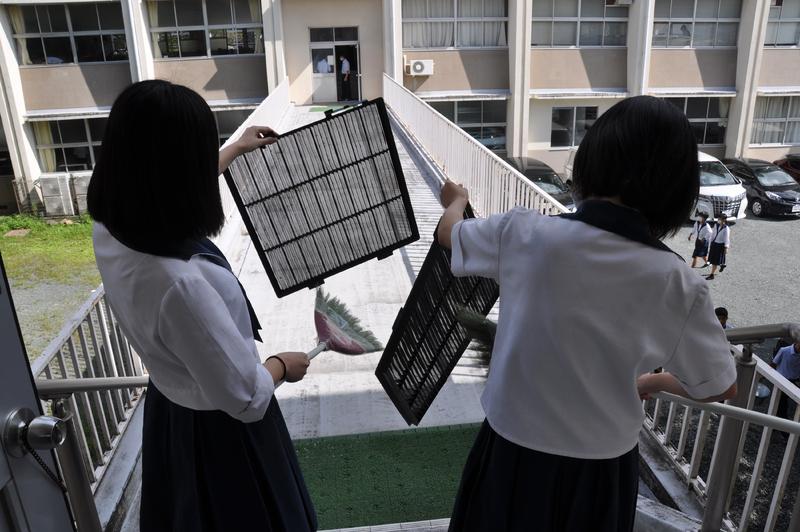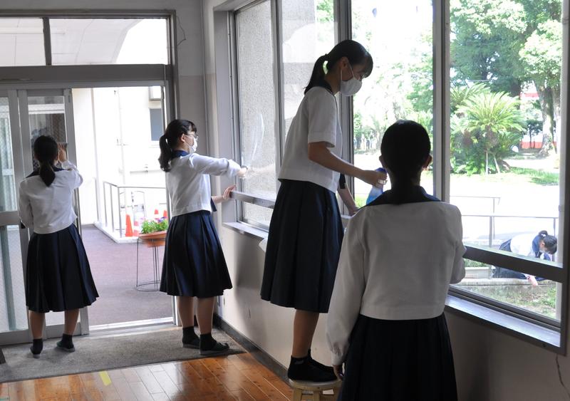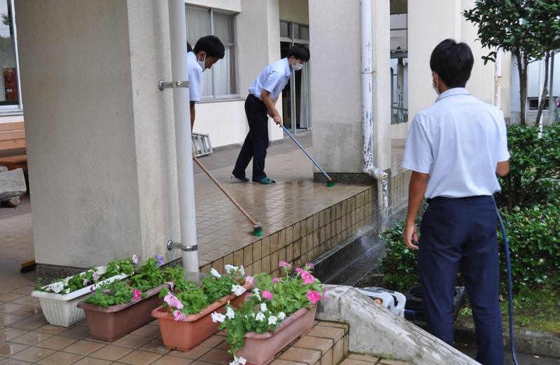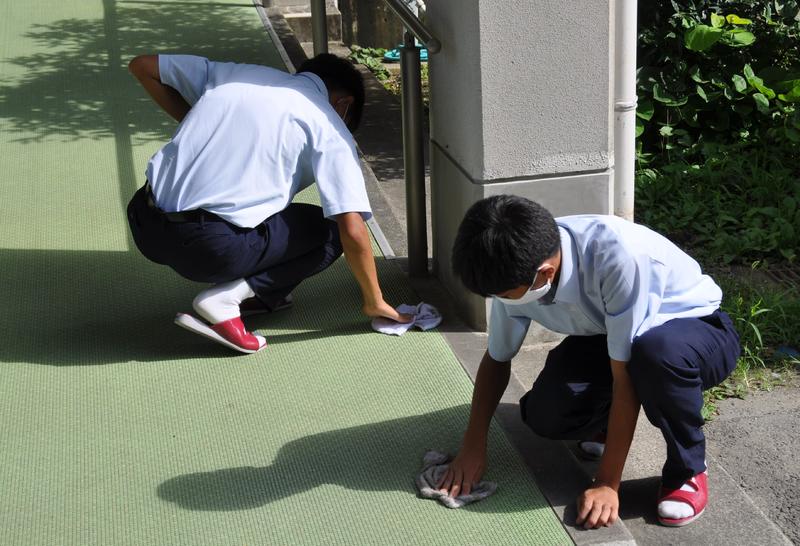 本校では、本日1学期の終業式を行います。新型コロナウイルス感染拡大防止のための県下一斉の休校から、6月1日に授業再開して2ヶ月間になります。日頃できない箇所まで丁寧に掃除をしました。